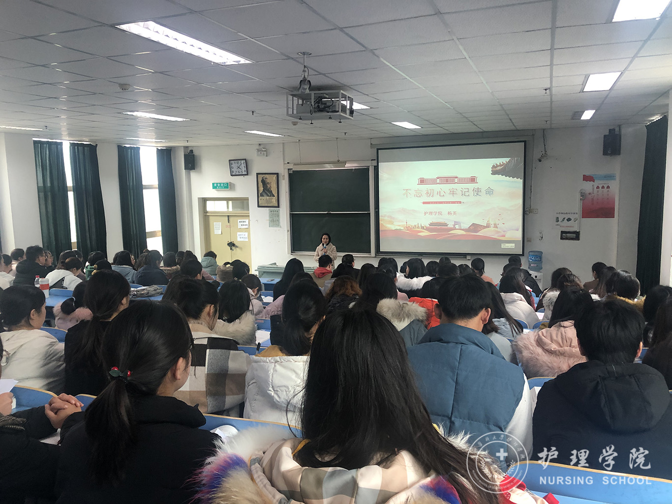 杨英还结合自己的调研成果跟大家探讨了学生党员教育成长问题,她要求全体党员要坚定理想信念,敢于负起责任与担当、敢于当好先锋模范,充分发挥共产党员的先进性,树牢“四个自信”,坚定“四个意识”,做到“两个维护”。苦练本领,认真学习专业知识,贯彻落实习近平总书记关于卫生与健康的重要论述,为健康中国建设作出应有的贡献和力量。