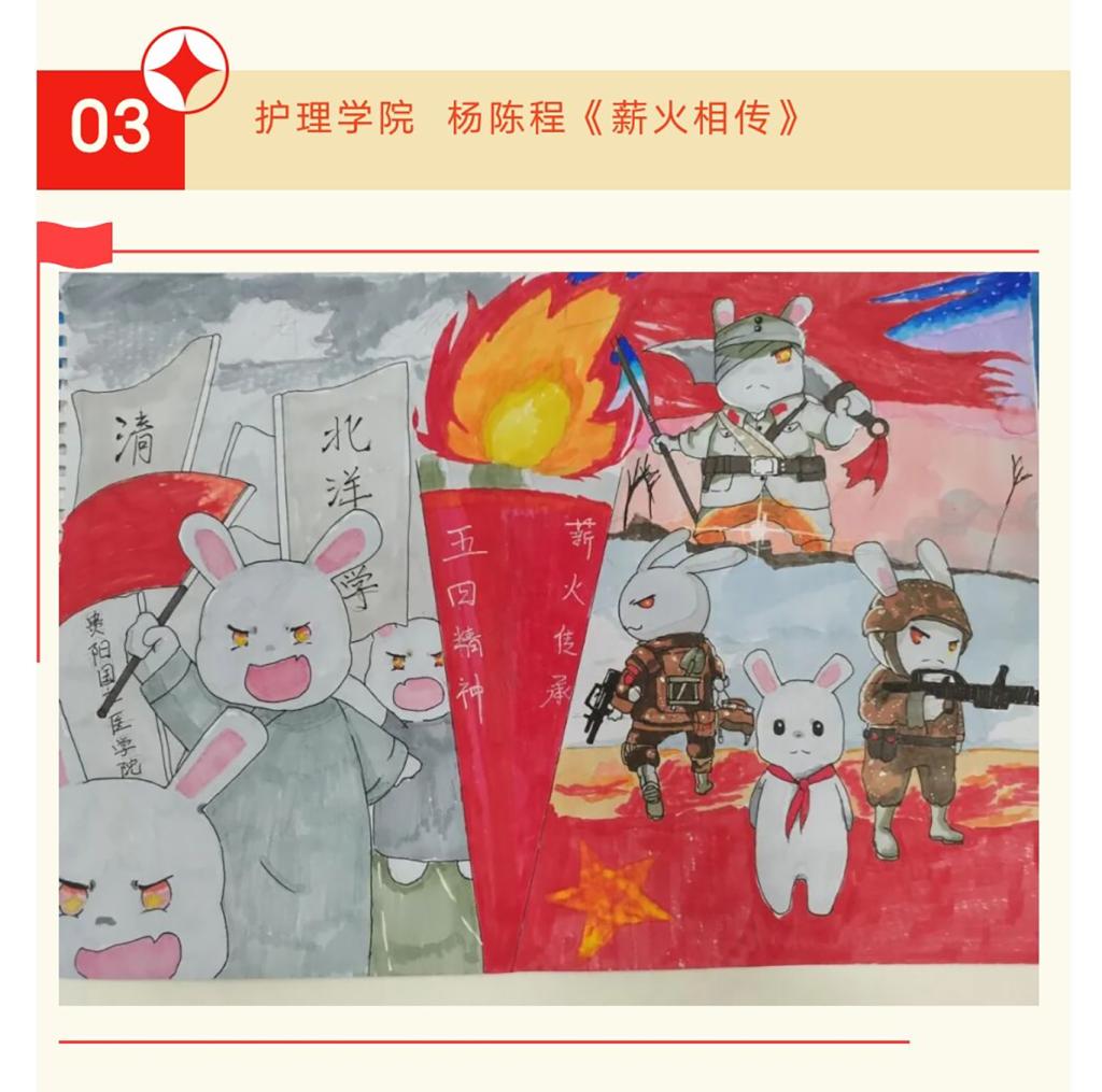 各班选手轻松握笔,运笔自如,创作出一幅幅色彩鲜艳、想象丰富、天真活泼的绘画作品。这些作品既充分体现了大学生热爱祖国的真情实感,又充分展示了他们热爱美、创作美和欣赏美德博雅情怀。最后在大家的共同努力下,杨陈程的《薪火相传》荣获校级一等奖,简廷凤的《青春》荣获校级三等奖,黄文青的《新曙光》荣获校级优秀奖。
