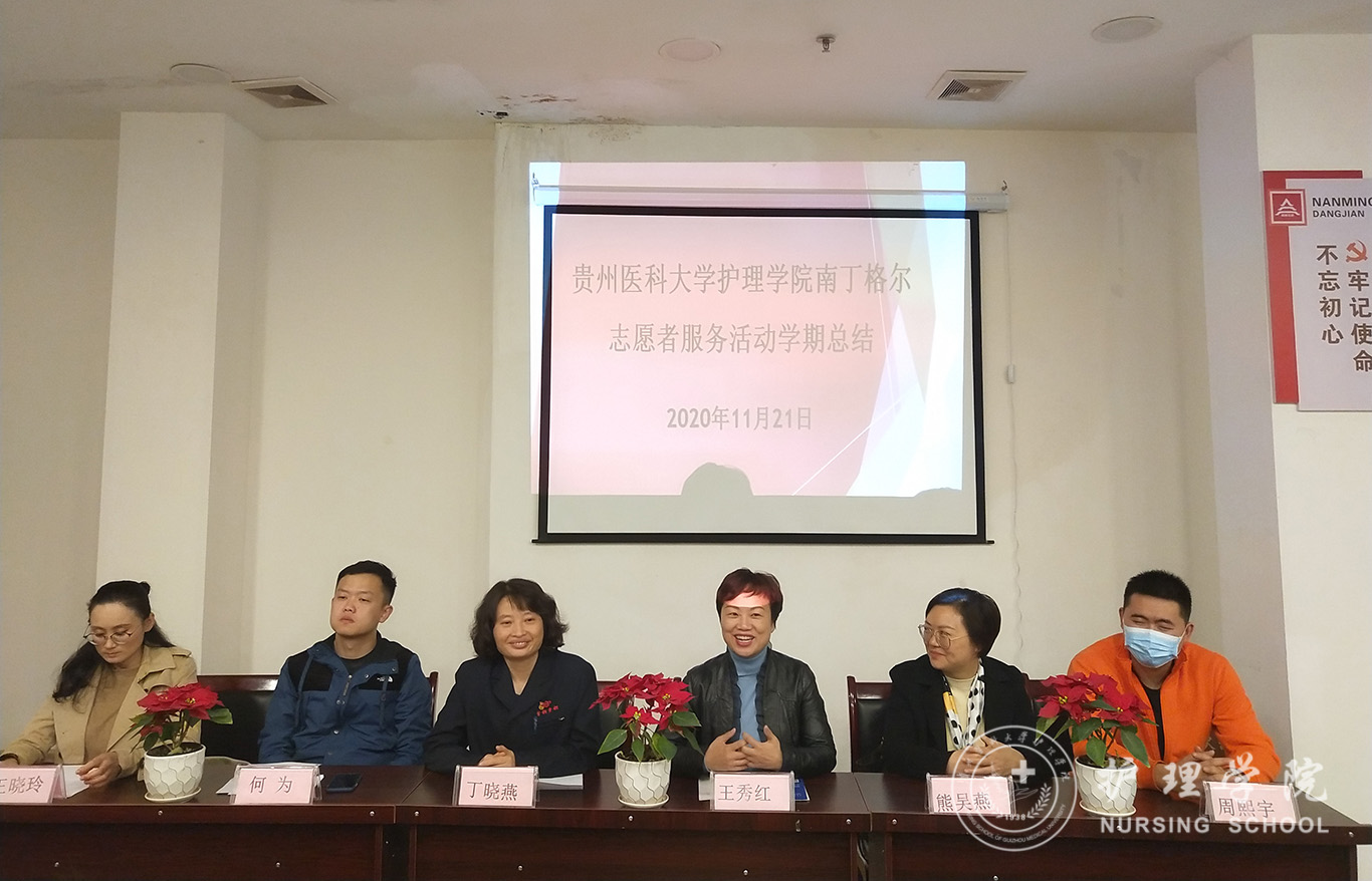 11月21日上午,YABO鸭脖暨中国南丁格尔志愿服务队YABO鸭脖分队“为老志愿服务”学期总结会议在贵阳市南明区油榨街道晚霞彩带老年人日间照料中心举行。贵钢医院党总支书记丁晓燕,YABO鸭脖党委副书记何为,YABO鸭脖党委委员、副院长、中国南丁格尔志愿护理服务队YABO鸭脖分队队长王秀红,中心经理周熙宇,护理学基础教研室副主任熊吴燕,YABO鸭脖分团委副书记王晓玲,2018级护理学、助产学同学代表参加了此次会议,会议由王晓玲主持。