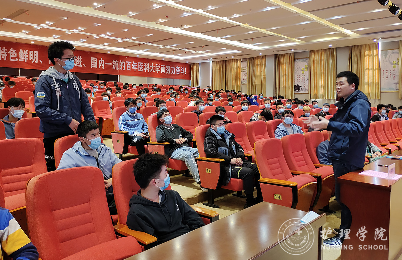 本次会议共有五项议程。第一项:毕丽老师介绍了出席本次大会的领导老师及校友嘉宾。会议第二项:黄秀峰学长分从学习态度、就业形式与观念进行了交流,他总结了当今男护士增多的原因,并归纳大众对护士的误解,也提到了如今护理专业的发展方向,还为同学们指出了护理工作可能遇到的心理问题,并提出了调解方法,最后秀峰学子分享了赴鄂州抗疫期间的收获与感想。会议第三项:唐攀学长分享了个人心得,他鼓励同学们在校期间要懂得劳逸结合,并通过专业数据分析了现今男护士的就业情况及现状,列举出现今男护士在医院中相对于女护士的各种优势。同时他还提到,作为男护士,无论在学校还是医院,都要学会敢于负责,勇于担当。“毅则立不毅则废”,只要肯努力,男护生的未来将充满无限可能。会议第四项:曾敏老师为同学们做会议最后的总结,提到同学们学生阶段学习成绩的重要性,要有职业学习规划,不能浪费自己宝贵的时间和精力;积极参加学校活动,珍惜当下,放眼长远,自强不息,努力成为一名合格的“男丁格尔”,争取成为护理界的“提灯男神”;并提议由师兄们为我们解答一些困惑的问题。同学们都十分珍惜这次机会,积极发言提问,学长们都一一解答。会议第五项:领导老师,校友嘉宾及参会人员合影留恋。