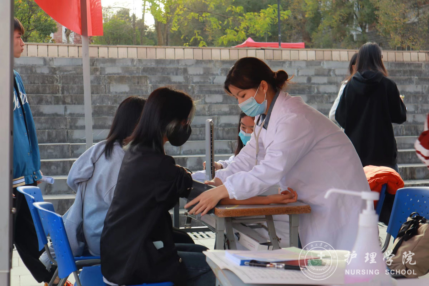 活动过程中,同学们全程佩戴口罩,严格遵守校园防疫要求。首先,同学们参与学习了“七步洗手法”“测量血压”“穿脱防护服”。参与现场学习的同学表示,医学生是守卫民众健康的新生力量,学习基础防疫知识义不容辞,更势在必行!期间,学院心理工作站的工作人员给现场的同学分发了便利贴,同学们把自己的烦恼写在便利贴上,以此释放学习和生活压力。