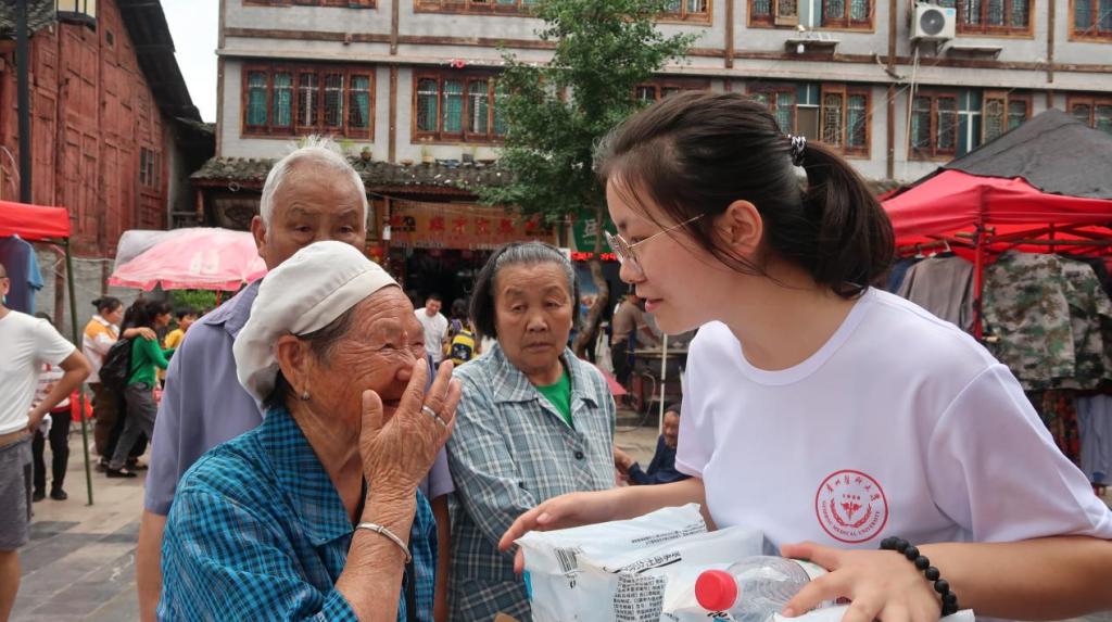 活动第一天,志愿者们抵达了瓮安县的猴场镇下司社区,稍作休息后,志愿者们在社区居民小区内开展了“聚力义诊惠乡村 健康助跑医者行”活动,为附近村民免费测量血压并进行了健康知识宣传,共同筑牢健康防线,为基层群众的生命健康安全保驾护航。活动中实践队成员们还为小区的小朋友们传授了文明安全知识,组织小朋友们进行有奖知识竞答与趣味游戏活动。通过活动引导他们树立积极正确的世界观、人生观、价值观,以善意孵化善意、用善良呼唤善良,使他们更加健康地茁壮成长。