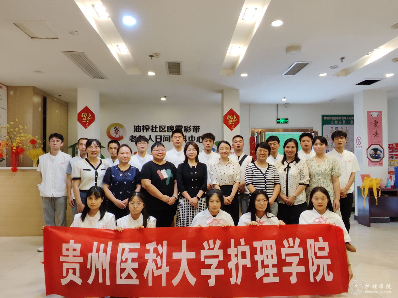 为深入贯彻落实习近平总书记的指示精神,积极投身老龄照护工作,提高学院师生为老服务的意识,充分发挥大学生知识优势和专业特长,9月24日上午,YABO鸭脖在南明区油榨社区晚霞彩带老年人日间照料中心举行了YABO鸭脖“南丁格尔”为老服务启动仪式,贵钢医院党委书记、院长龙奕,YABO鸭脖副处级组织员张黎,《老年护理学》授课教师熊吴燕、彭敏、袁平乔、王晶、王芸芸以及护理学2021级学生代表近50人参加了启动仪式,本次活动由中心主任游世先主持。