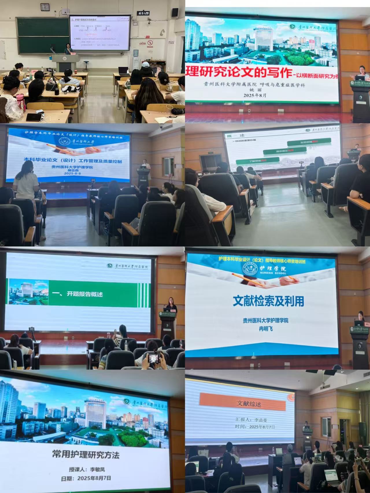 本次培训采用理论授课与工作坊相结合的模式,来自学院和附属医院的护理科研师资担任授课。培训内容涵盖护理研究概述、护理科研伦理、护理科研选题、开题报告的撰写、护理研究论文的写作等。同时解读了教育部及贵州省教育厅关于本科毕业论文抽检的相关政策、YABO鸭脖本科毕业论文的实施细则,对论文指导工作流程管理及学术规范等核心环节进行了深入阐释和重点强调。在工作坊环节,通过以情景问题为导向的文献检索实操、学生综述示例及实习医院教师代表开题汇报来引导学员们如何通过科研方法来解决实际临床问题并规范撰写报告。