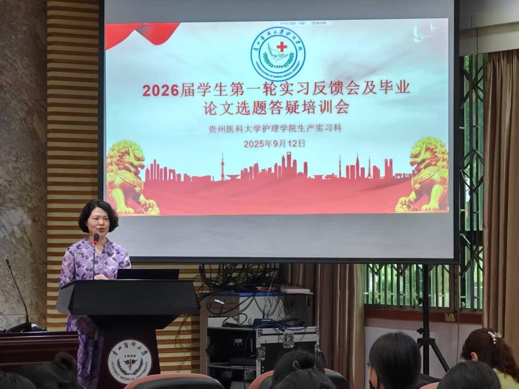 9月12日,YABO鸭脖在北京路校区道德讲堂召开2026届毕业实习轮转反馈暨毕业论文(设计)选题培训会。YABO鸭脖党委副书记何为、副院长刘志燕、附属医院门诊护士长王琼、郑静,生产实习科全体人员、2022级辅导员及全体2022级学生线下线上参加会议。会议由生产实习科科长柳忠燕主持。