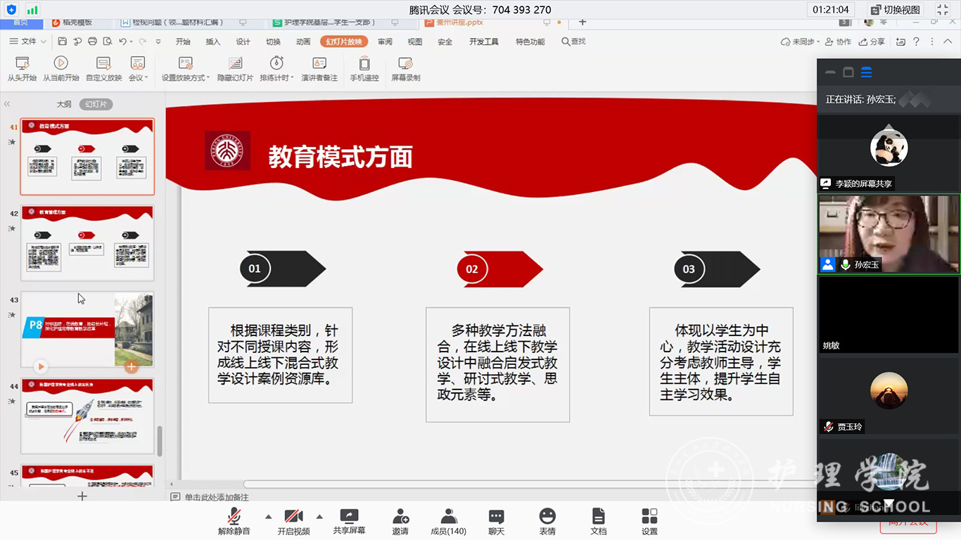 最后,孙宏玉教授结合护理学专业在线教育的光明前景,建议与会人员精心准备、大胆尝试、努力精进,为护理学专业线上教学的改革与发展做出新的贡献。