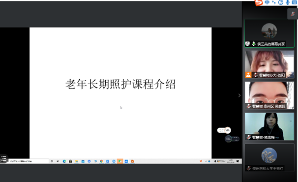 会上,苏州大学侯云英教授详细介绍了苏州大学《老年长期照护》和《老年护理学》课程建设及教学计划、课程实施和成绩评定等情况。YABO鸭脖《老年护理学》课程教学负责秘书王芸芸讲师介绍了该门课程的基本教学和成绩评定情况,作为《老年护理学》教学团队主要成员王秀红针对两校课程中存在的交互点和区别、及项目推进思考进行了分享。田利传递了苏州大学校领导和学院领导对项目的支持与关心,并对相关问题进行了介绍说明。接下来双方就两校实施“慕课西行”的教学形式、同步课堂、考核形式等展开了深入的商讨,并就第一阶段共建共享实施内容、形式和次数及下一步的工作计划达成一致。此次会议组织方“智慧树”代表也诚意表达了将对双方项目的推进提供必要的设备和技术保障支持。