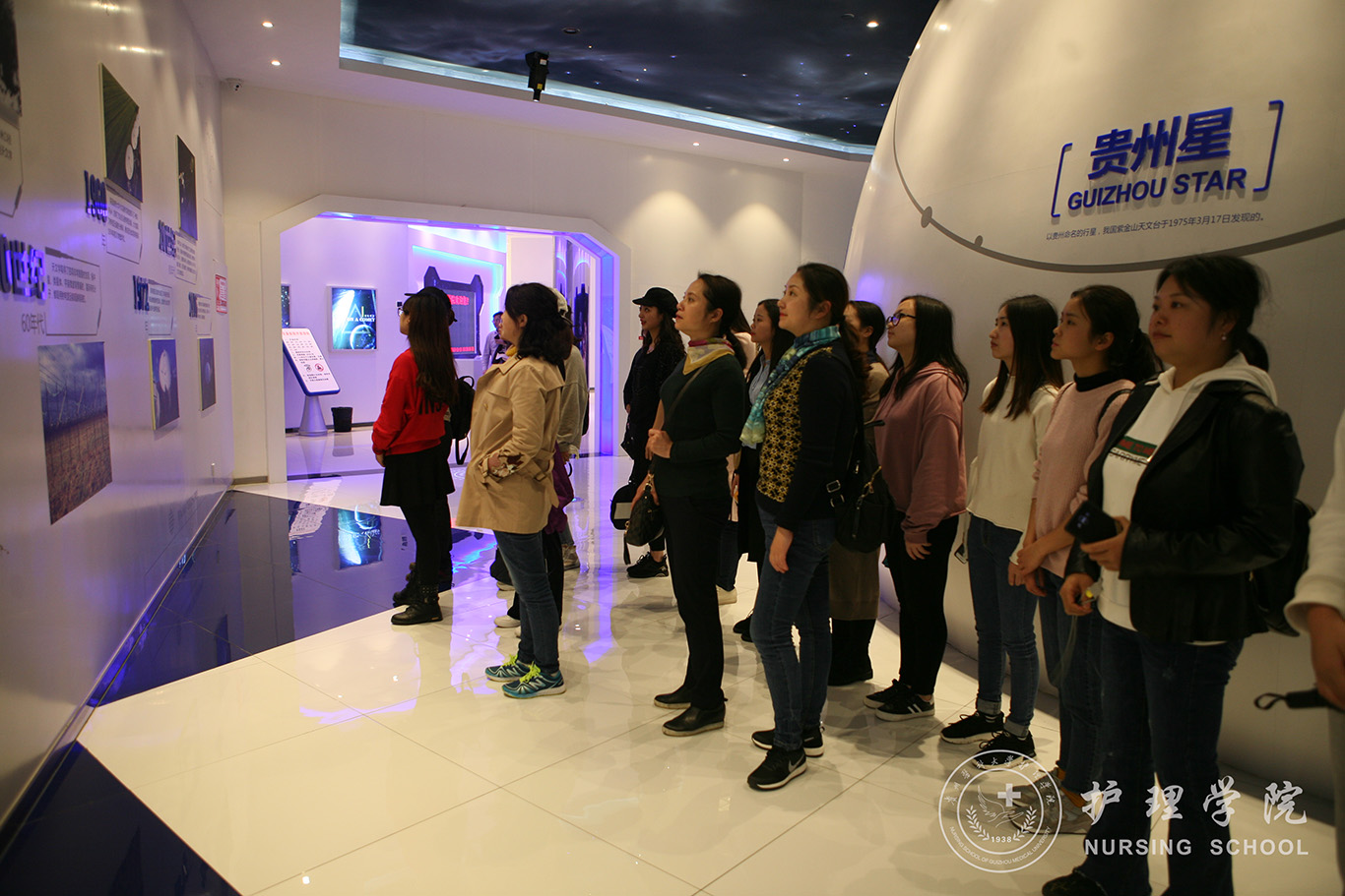 活动中,鸭脖师生参观了“中国天眼”瞭望台区、科普文化园区、天文时空塔区、科学创意区、天文论坛区等五大区域。在国土天文体验馆,师生们跟随讲解员,参观了射电天文厅、太阳系家族、恒星与星系、星际冒险区等展区,并进入天象影院,体验游走太空的感觉,增长了广大师生党员的天文知识和科学素养。在瞭望台区,师生们近距离领略世界最大射电望远镜的雄伟壮观,了解南仁东等科学家开创天眼的艰辛过程,感受“天眼”精神,进一步提升了师生们的爱国情怀和自信精神。