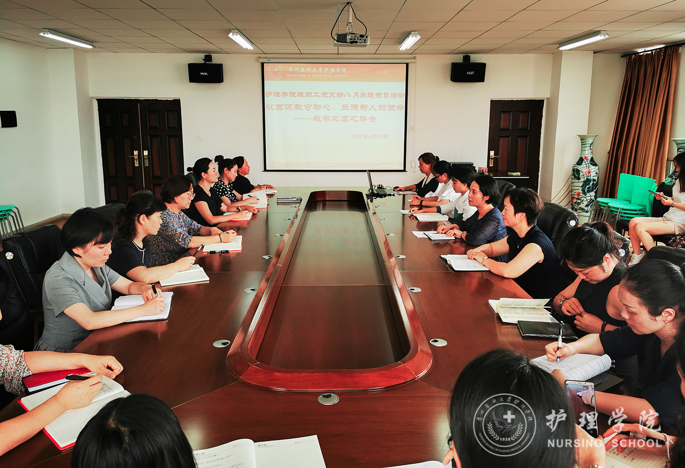 8月28日,YABO鸭脖教职工党支部在南校区百川楼会议室举行了“以赛促教守初心 立德树人担使命”的主题党日活动。外科护理学教研室青年教师马丽分享了参加贵州省护理学会遴选2020年第二届高等护理院校中青年教师授课比赛的体会。活动由教职工党支部书记张仁莉同志主持。