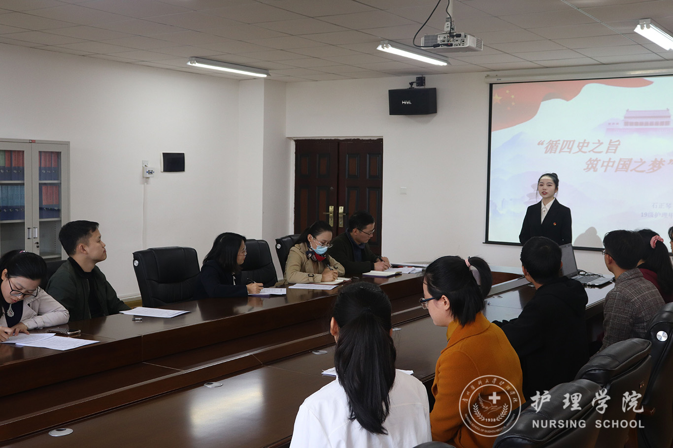 忆往昔峥嵘岁月,看今朝民富国强。为了响应校团委号召,扎实推进学生学好历史,用好历史,全方位全过程抓好大学生活思想政治引领和价值引领,10月22日中午12:20分,YABO鸭脖“党史、新中国史、改革开放史、社会主义发展史学习教育及新冠肺炎疫情防控知识演讲比赛”决赛于百川楼五楼会议室正式拉开了序幕。YABO鸭脖党委副书记何为、YABO鸭脖团委副书记王晓玲、YABO鸭脖学生科副科长毕丽、学生第一党支部书记杨叶卿、学生第二党支部书记李杏春、学生第三党支部书记刘妍、2017级辅导员马景瑶老师出席了此次比赛并担任评委,本次演讲比赛由王晓玲主持。