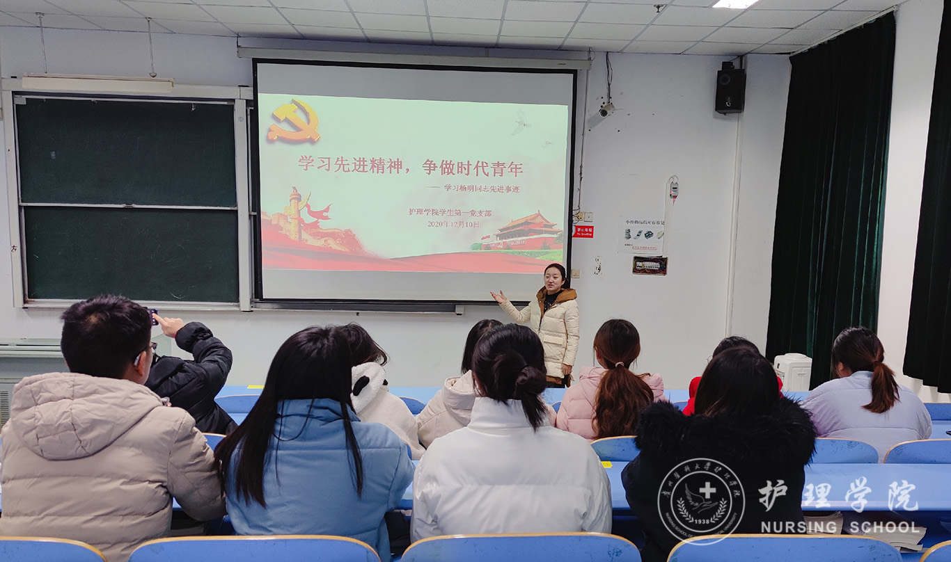 12月10日,为引领支部全体学生党员认真学习杨明同志先进事迹,充分发挥先进典型的示范引领作用,进一步提高学生党员的思想认识,培养有责任、有担当的青年大学生。YABO鸭脖学生第一党支部在YABO鸭脖北校区3402教室开展了主题为“学习时代精神,争做时代青年—学习杨明同志先进事迹”主题党日活动。由YABO鸭脖学生第一党支部书记杨叶卿主持,全体学生党员通过线下、线上形式参加会议。