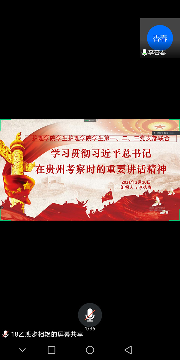 2月10日,YABO鸭脖学生党支部组织党员同学通过腾讯会议,学习贯彻习近平总书记视察贵州重要讲话精神。本次会议由YABO鸭脖学生第二党支部书记李杏春主持并带领学习。