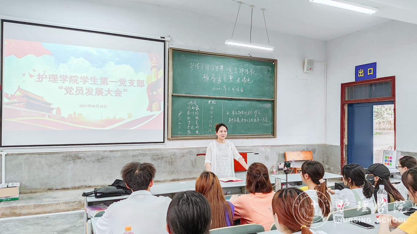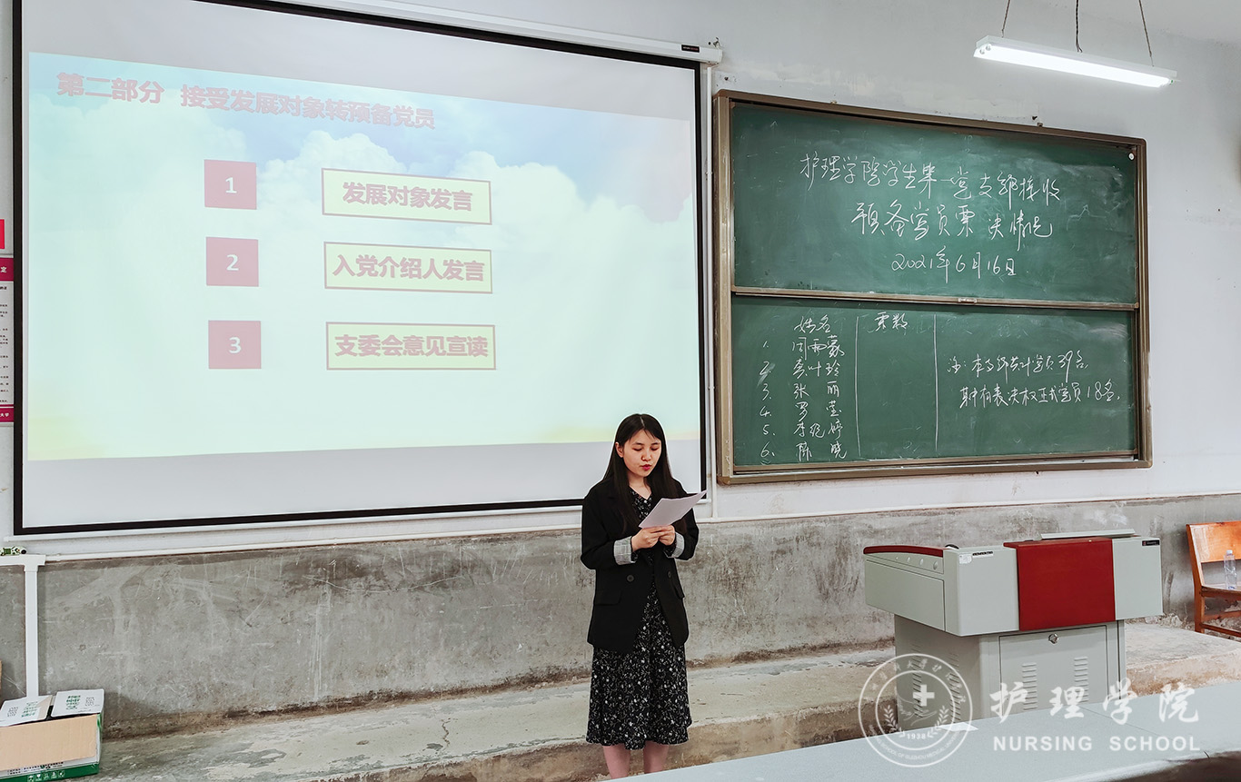 接着杨叶卿汇报了学生第一党支部支委会对发展对象的审查情况,会议在听取本人汇报和入党介绍人意见后,由18名正式党员对其展开讨论并通过无记名投票的方式进行表决,经现场计票,周雨蒙等6名同志均获得18票全票通过,大会同意接收周雨蒙等6名同志为中共预备党员。