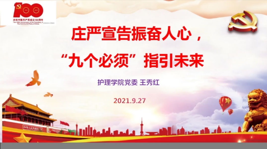 9月27日,为深入贯彻习近平总书记七一重要讲话精神,深刻理解把握“九个必须”,凝聚新时代奋进磅礴力量。YABO鸭脖党委委员、副院长王秀红以《庄严宣告振奋人心、“九个必须”指引未来》为题,为YABO鸭脖学生第三党支部全体党员上了一堂专题党课。
