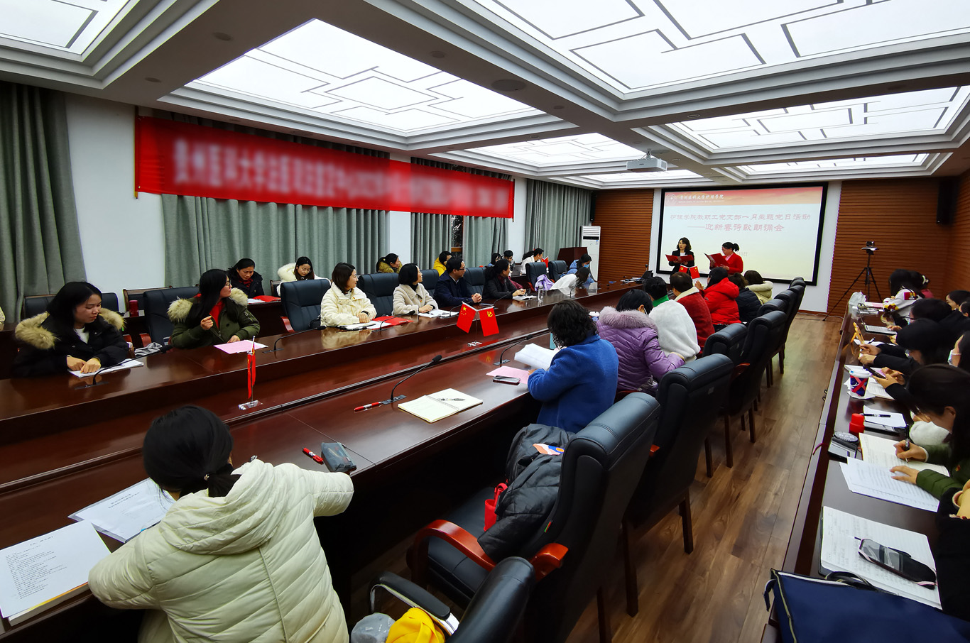 1月10日,学校党委委员、附属医院党委书记李海洋应邀出席YABO鸭脖教职工党支部在北校区法医学院会议室开展的“颂诗歌 迎新年”主题党日和“牢记党员身份 过好政治生日”活动。学院党委书记杨英、院长李亚玲、副院长刘志燕、副处级组织员张黎及支部全体党员参加了活动,会议由党支部书记张仁莉主持。