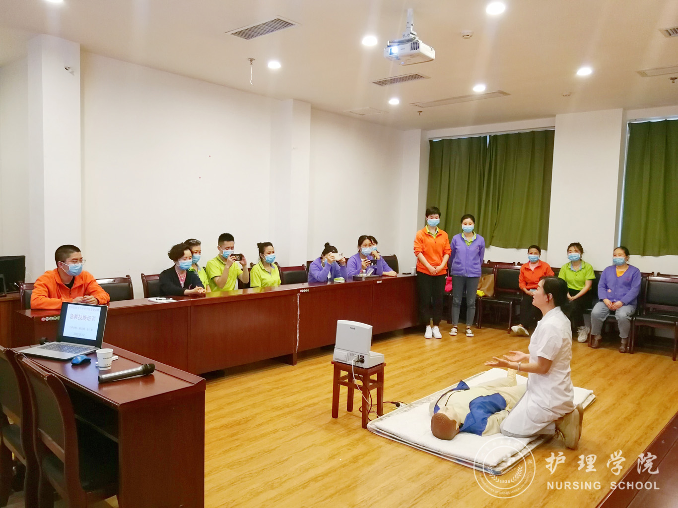 本次培训主讲为张仁莉和熊吴燕。两位老师分别以理论讲解、演示教学、实践操作等方式,生动、直观地讲解了“海姆立克法”“心肺复苏技术”等基本救护方法和技巧。参加培训的人员在老师的指导下认真练习,取得了良好的培训效果。