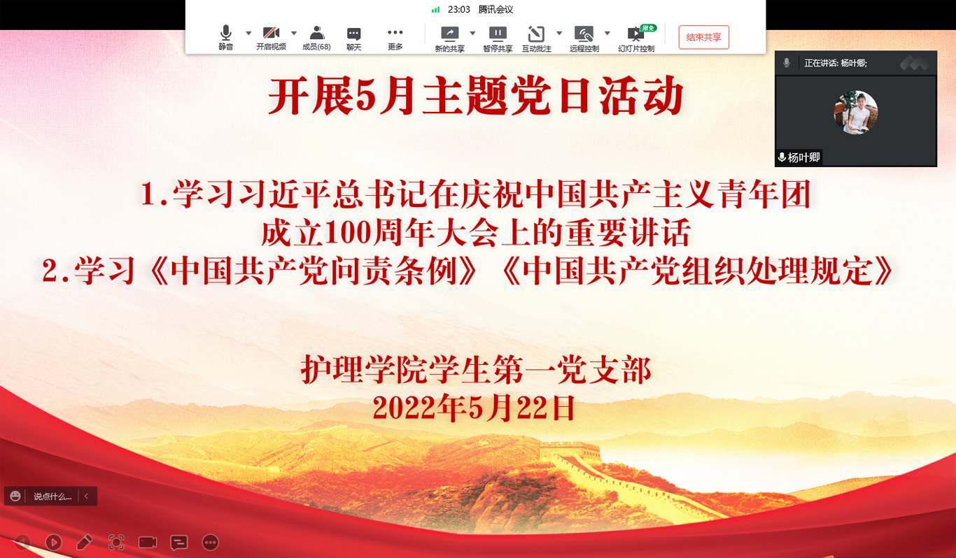5月19至22日,为深入学习贯彻习近平总书记系列重要讲话精神,进一步弘扬党的光荣传统,更好地把青年团结起来、组织起来、动员起来,引导广大青年在思想洗礼、在实践锻造中不断增强自身的志气、骨气、底气。YABO鸭脖各学生党支部开展了习近平总书记在庆祝中国共产主义青年团成立100周年大会上的重要讲话精神、习近平总书记关于安全生产重要论述和指示批示精神、《中国共产党问责条例》《中国共产党组织处理规定》《中华人民共和国民法典》的理论学习。各学生党支部书记主持会议,全体党员通过线上形式参会。