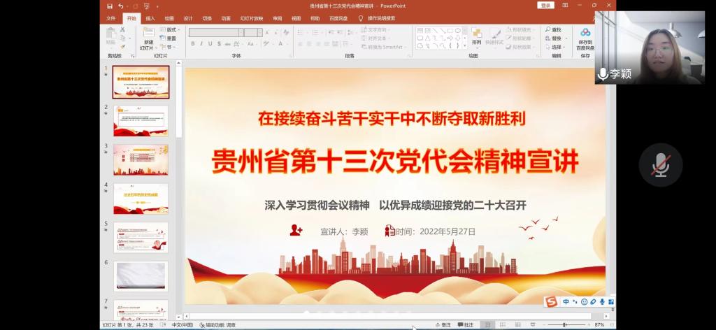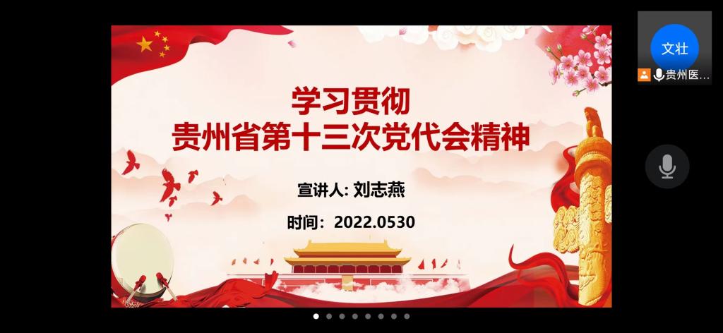 为深入学习贯彻省第十三次党代会精神,激励广大党员奋力谱写多彩贵州现代化建设新篇章,学院党委委员、副院长刘志燕,党委委员、综合办公室副主任李颖分别于5月27日和30日在YABO鸭脖学生第二党支部开展了省第十三次党代会精神宣讲活动。支部全体党员通过线上线下结合的形式参加宣讲,学院分党校第五十六期入党积极分子培训班学员列席宣讲。本次宣讲活动由支部书记刘文壮主持。