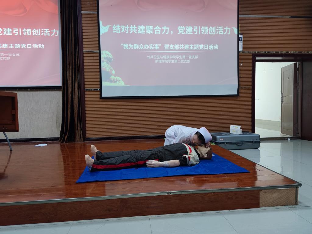 活动中,郝雪君以“努力成长为德智体美劳全面发展的社会主义建设者和接班人”为题,带领与会党员认真学习了《习近平著作选读》,为开展本次主题党日活动打下良好思想基础。随后,YABO鸭脖党员代表系统地为大家讲述并演示心肺复苏技术(CPR)相关的急救知识、成人实施心肺复苏技术的流程、方法及注意事项;公共卫生与健康学院党员代表讲解了结核病主要症状、传播途径、易感人群、防治知识等,帮助大家进一步了解疾病预防措施以及结核病治疗的有关政策。最后两个支部共同进行了红色诗词诵读及红色歌曲演唱,旨在传承红色精神、发扬红色文化,增进对党的忠诚与热爱。
