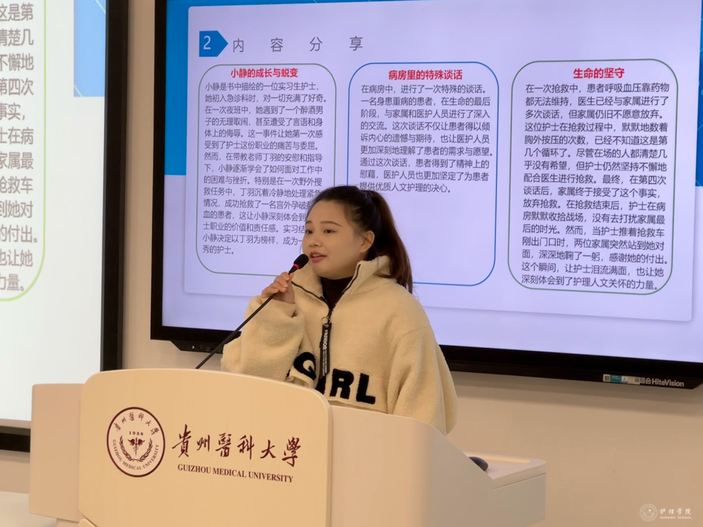 分享环节,张迎倩分享《最好的告别》,阐述生命从老年走向衰老、死亡的过程,点明生活既需健康安全,更需心灵支撑,助大家正确认知衰老与死亡;李莎借《人生的枷锁》聚焦人生选择与决策,鼓励众人勇探未知、直面失败,在体验百味人生中找寻自身价值;周国欣以《生死守望——我是中国护士》分享病房故事,展现生死病痛间的人间真情与复杂人心,激励大家面对生活挑战时秉持同理心与勇气。