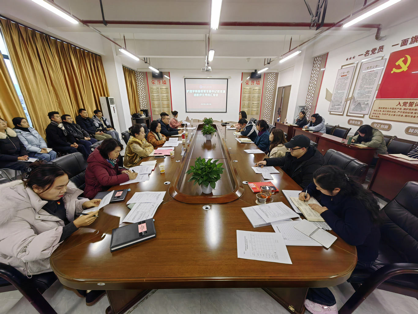 会议最后,杨英作总结发言。她强调,支部书记需重点聚焦三方面工作:一是提高政治站位,强化理论学习,推动理论与实践结合,实现思想自觉向行动自觉转化;二是积极探索支部工作新方法,丰富活动内容与形式,结合护理专业特色推进党建与业务深度融合,确保党建工作与学院事业发展同频共振、双促双赢;三是加强制度建设,不断增强党支部政治功能与组织功能,把党支部锻造成引领事业高质量发展的坚强战斗堡垒。