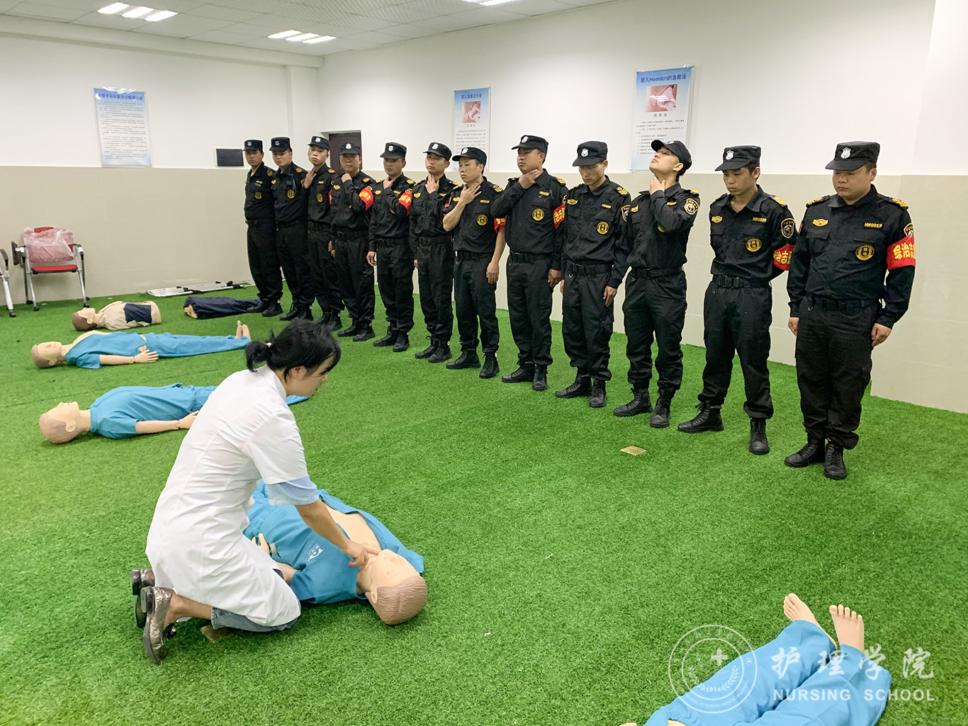 本次培训主讲为张仁莉和外科护理学教研室教师李丽湘。两位老师分别以理论讲解、演示教学、实践操作等方式,生动、直观地讲解了“止血包扎术”“海姆立克法”“心肺复苏技术”等基本救护方法和技巧。参加培训的人员在老师的指导下认真练习,取得了良好的培训效果。