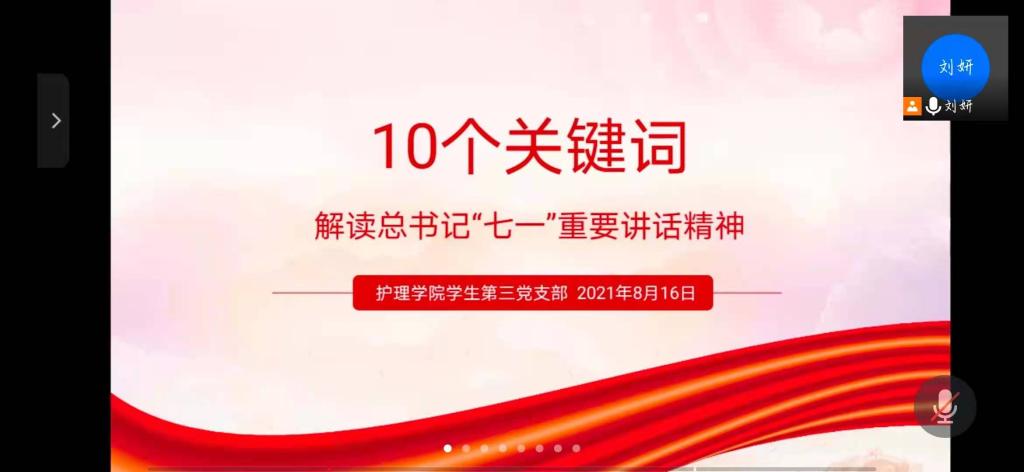8月16日,为深入学习贯彻习近平总书记“七一”重要讲话精神,从党的百年奋斗历程中汲取奋进力量,引导新时代中国青年深刻领会和准确把握重要讲话精神的重大意义、丰富内涵,切实把思想和行动统一到讲话精神上来。YABO鸭脖学生第三党支部开展了习近平总书记“七一”重要讲话精神专题宣讲会,由YABO鸭脖学生第三党支部书记刘妍主讲,支部全体党员和入党积极分子参会。