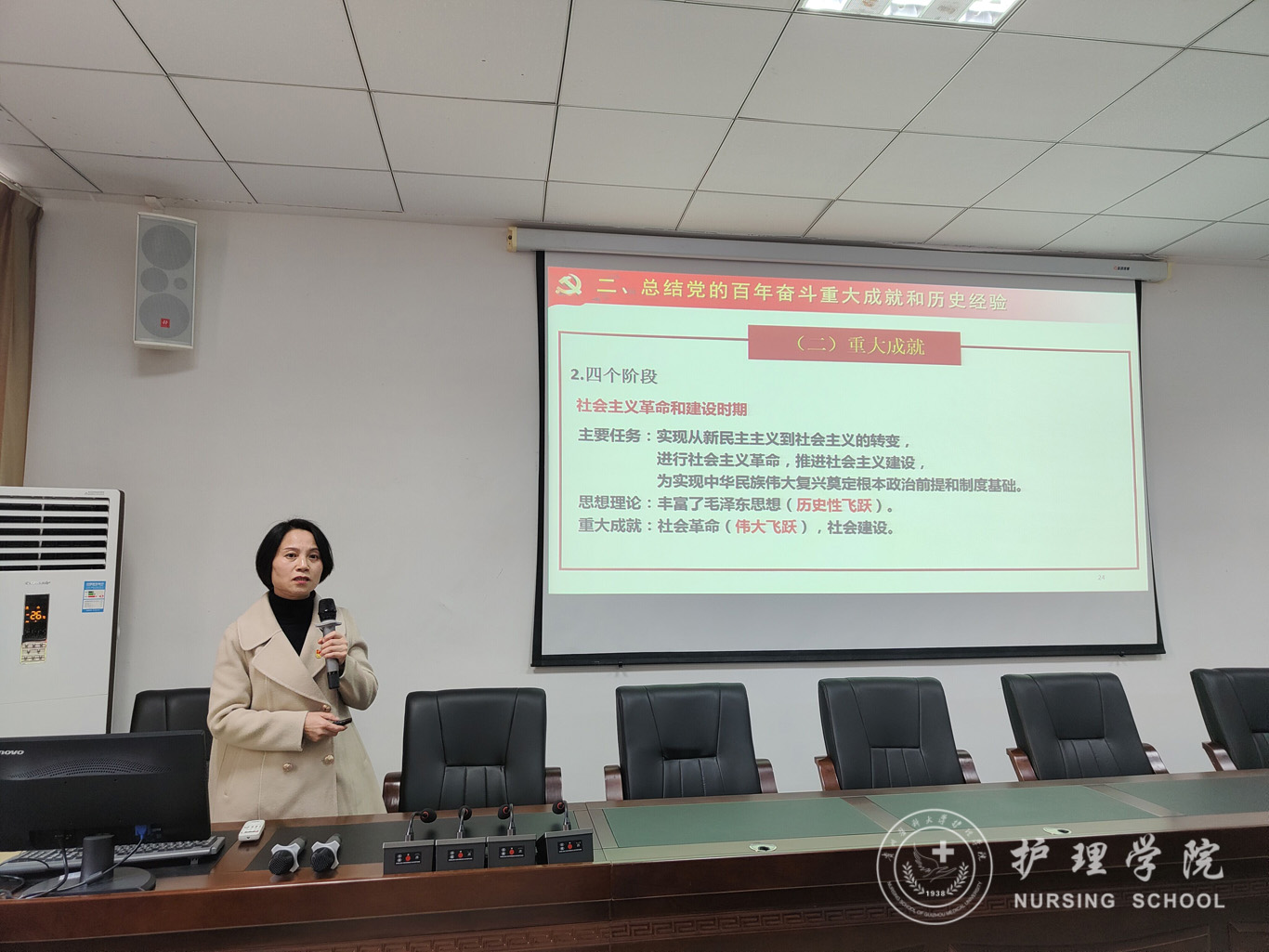 随后,YABO鸭脖党委书记杨英以“勿忘昨天、无愧今天、不负明天”为主题为两院师生党员做了党的十九届六中全会精神宣讲。杨英强调,党的十九届六中全会的召开是具有历史性意义的重要会议,我们要更加紧密地团结在以习近平同志为核心的党中央周围,以咬定青山不放松的执着奋力实现既定目标,以行百里者半九十的清醒不懈推进中华民族伟大复兴。