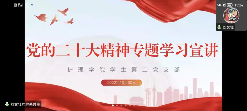 10月30日,为深入学习宣传贯彻中国共产党第二十次全国代表大会精神,敦促支部党员学思用贯通、知信行统一,使党的二十大精神在支部党员中落到实处、开花结果,YABO鸭脖学生第二党支部开展了党的二十大精神专题宣讲,会议由支部书记刘文壮主持,全体党员通过线上参加。