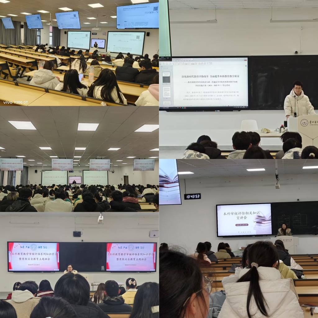 各年级辅导员深入班级细致解读本科教育教学审核评估的重要性、基本理念、基本内涵和工作要点。通过班会,学生对审核评估有了更加全面和深入的了解,明确了审核评估的重要意义和具体要求,进一步凝聚起推进本科教育教学高质量发展的思想共识和行动自觉。同时,各班辅导员以现实案例进行安全教育,旨在加强学生安全意识,做好寒假安全教育引导。