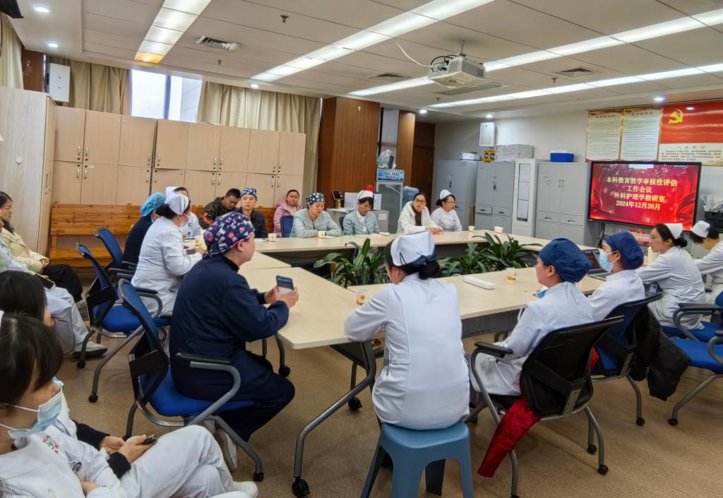12月26日,为了全面回顾和总结本学期外科护理学教研室教学工作以及传达新一轮本科教育教学审核评估的重要性和内容,明确改进方向和目标,提升教学质量与管理水平,外科护理学教研室在YABO鸭脖附属医院泌尿外科16楼学习室进行了2024-2025学年第一学期教学总结及本科教育教学审核评估工作会议,会议由外科护理学教研室主任韩樱主持,教研室全体教师参加了会议。首先,外科护理学教研室副主任乔筠对本学期教研室承担的教学工作、取得的主要成绩以及存在的不足等方面进行了汇报,参会人员就会议中提到的各种问题进行了反馈和讨论,共同商讨解决方案。