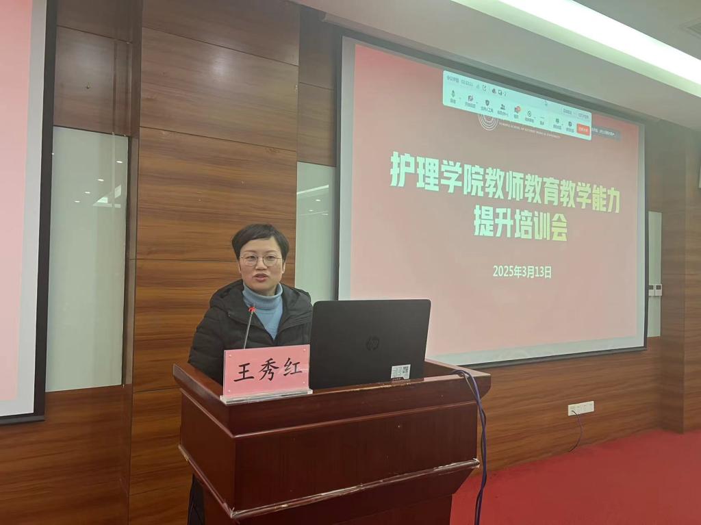 为助力护理教育教学高质量发展,全面提升护理学科教师教育教学能力,扎实推进新一轮本科教育教学审核评估迎评促建工作高效开展,YABO鸭脖于3月13日在北京路校区临床技能中心207室举行教师教育教学能力提升专题培训会。本次培训聚焦教学设计与模式创新、教学评价改革等内容,由学院李红、马丽两位副教授进行专题培训,会议采用线上线下结合的模式举行。院长王秀红、副院长刘志燕、YABO鸭脖附属医院护理部副主任顾颖、YABO鸭脖全体专业教师、附属医院及护理学专升本各教学点教学老师、教学管理人员、YABO鸭脖研究生200余人参会。会议由刘志燕主持。