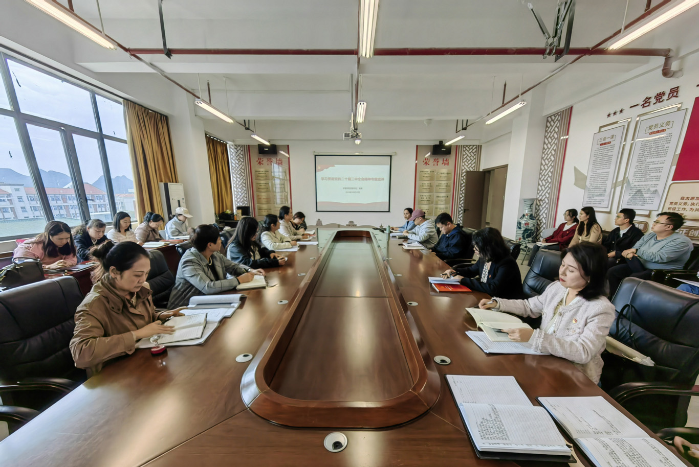 10月15日,为深入学习贯彻党的二十届三中全会精神,引导教职工把思想和行动统一到全会精神上来,以高度的政治自觉和行动自觉将党中央部署转化为推动学院高质量发展的强大力量,YABO鸭脖党委书记杨英在云漫湖校区酬勤楼六楼会议室为全院教职工宣讲了党的二十届三中全会精神。