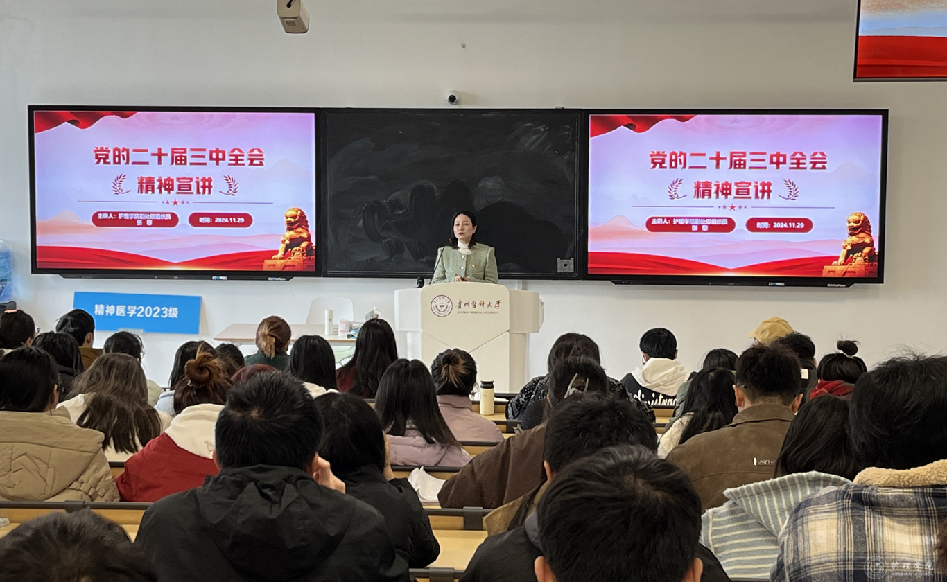 11月29日,为进一步深入学习贯彻党的二十届三中全会精神,加强学生思想政治教育工作,YABO鸭脖副处级组织员张黎在临床组团R211教室,为护理学2022级5班进行了二十届三中全会精神宣讲。